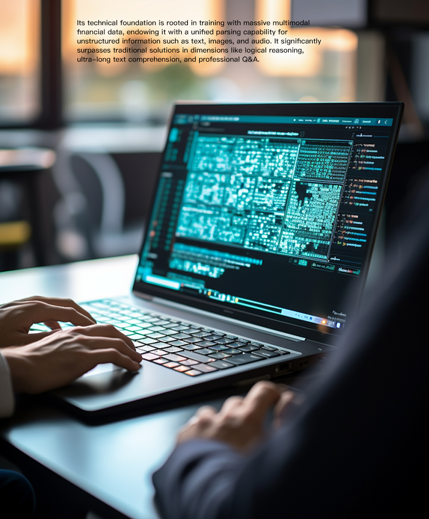 Design highlights focus on three aspects: First, a full-stack security foundation integrates data protection and efficient reasoning mechanisms, achieving a 98% accuracy rate in understanding financial terminology (compared to the industry average of 80%). Second, closed-loop business integration enables full-process coverage from customer insights to risk monitoring, with investment research report generation and customer profiling accuracy exceeding 90% and efficiency improved by 30%. Third, performance breakthroughs support ultra-long inputs of 100,000 tokens (industry average: 30,000), single-channel output of 10 tokens per second, 50% improved concurrency, and response times reduced to 30% of traditional models.
